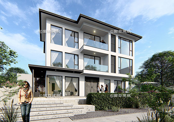 占地面積 142.4㎡ 土建造價 60.0萬 帶底商三層美式別墅